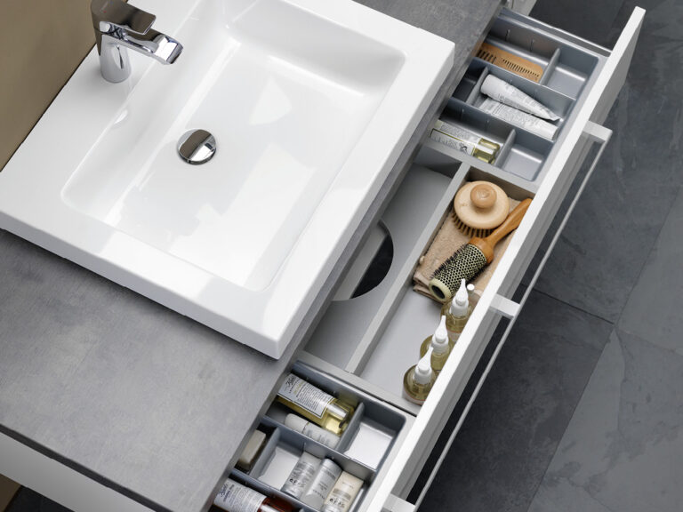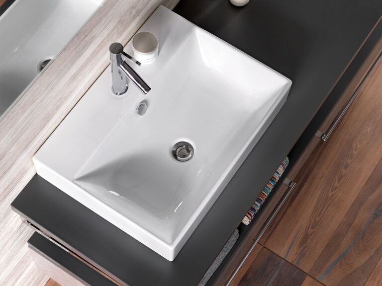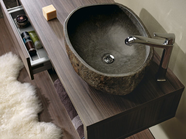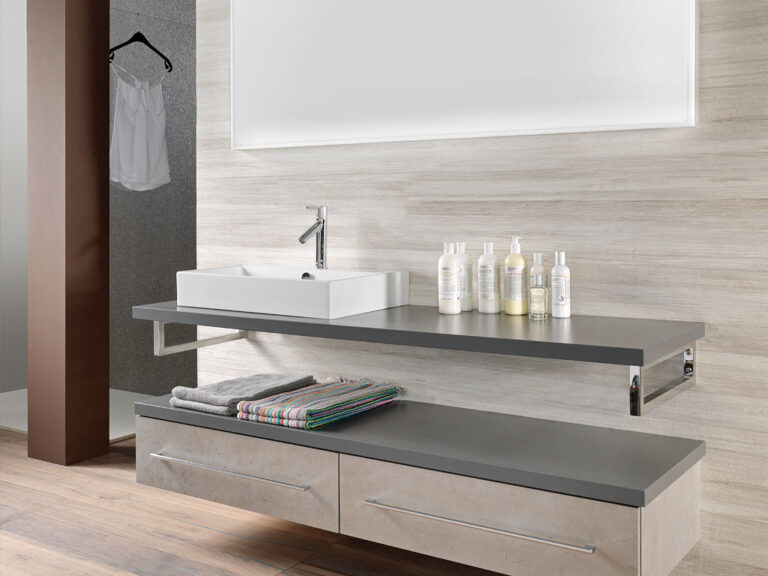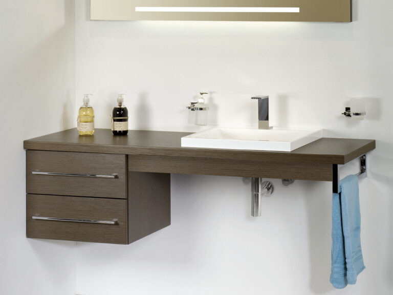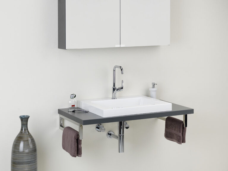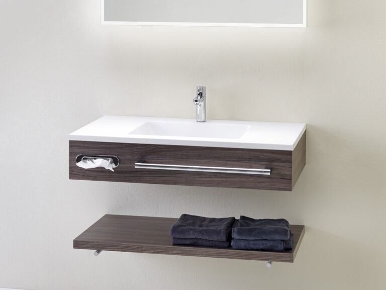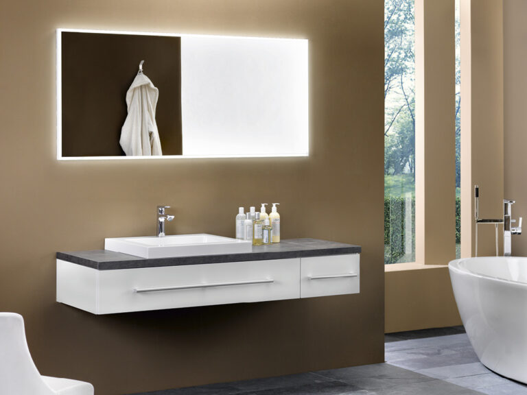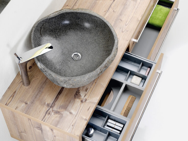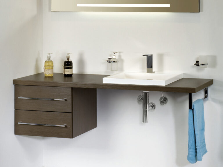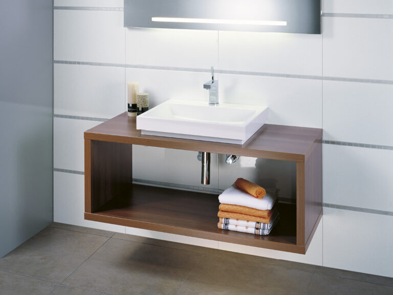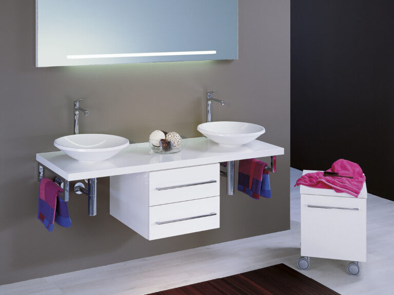 Riva ist Individualität in Reinkultur. Denn Riva ist eine überaus variantenreiche, detailverliebte Waschplatzlösung mit den Features eines Maßmöbels, die sich mit präziser Linienführung an fast jede Raumsituation anpasst. Flexibel planbar in einer Breite von 60 cm bis 260 cm und frei kombinierbar mit einer großen Palette an Mineralguss-Waschtischen, den neuen Conform-Keramikbecken und jeder beliebigen Aufsatz-Keramik ist Riva als umfassendes, universell einsetzbares Programm mit vielen Extras und einem großen Modellangebot angelegt. Egal, ob für private Lebensräume oder für den Hotel- und Objektbereich. Verchromte Konsolen dienen als Plattenauflage und Handtuchhalter zugleich. Die Ladenausstattung ist individuell wählbar und bietet mit hochwertigen Schubladeninterieurs großzügigen Stauraum für alle Dinge der täglichen Pflege. Und das Schöne ist, Sie können alles haben: Leichte, elegante Möbel mit weißen Aufsatzbecken, kraftvolle, archetypische Formen mit handgefertigten Becken-Skulpturen aus Lavastein, auf die pure Funktion reduzierte Konsolenlösungen … Machen Sie sich ein Bild, wie Riva Maß an Ihren Bedürfnissen und an Ihrer Persönlichkeit nimmt und daraus ein Bad formt, das Ihnen Tag für Tag viel Freude bereitet.