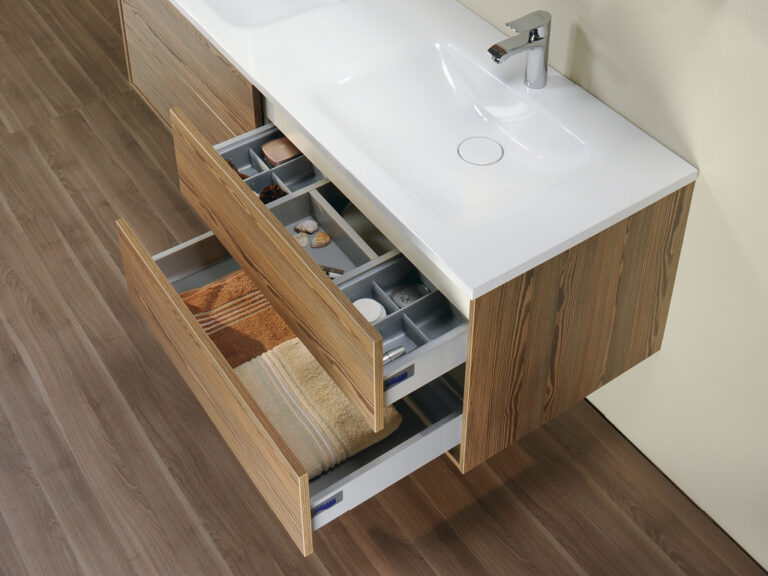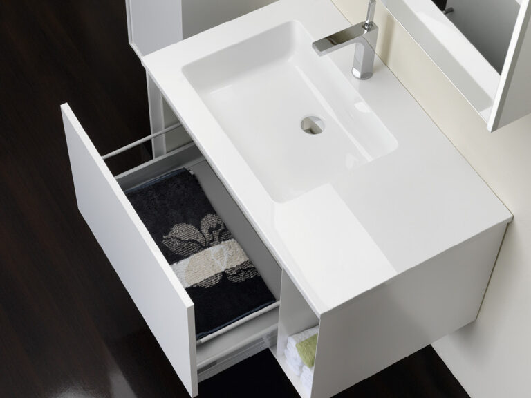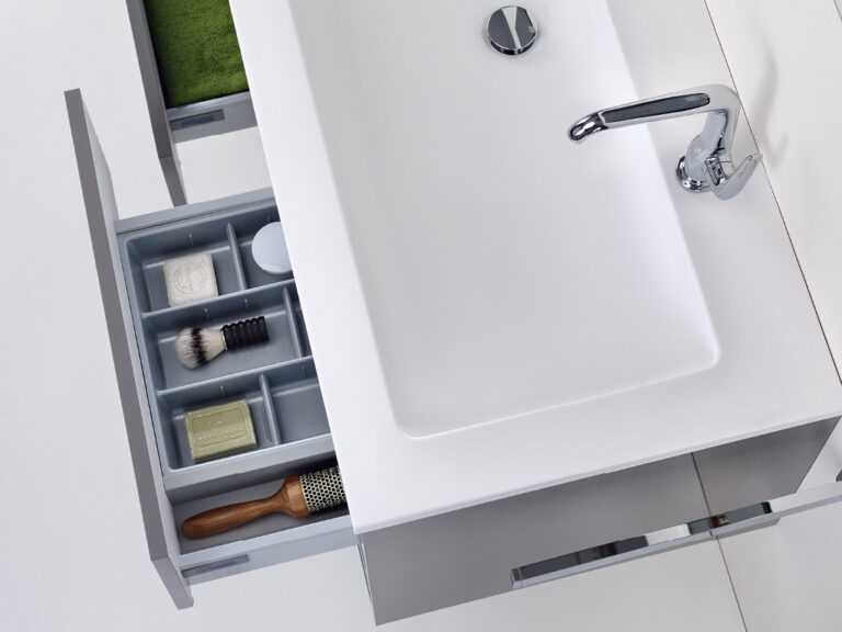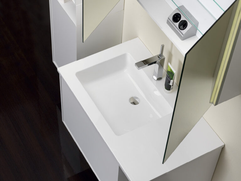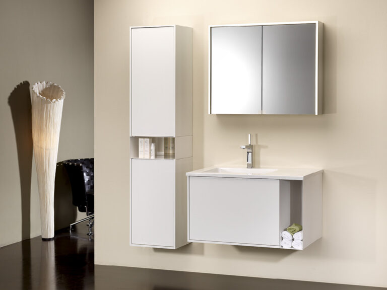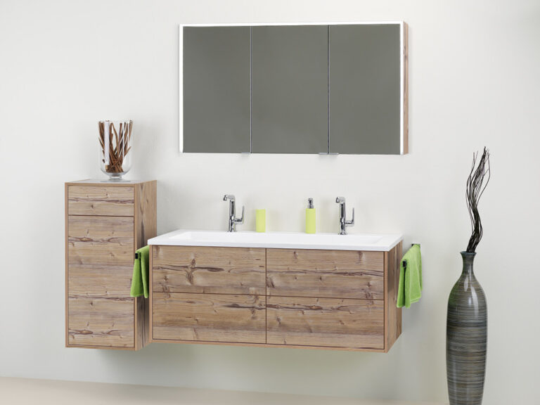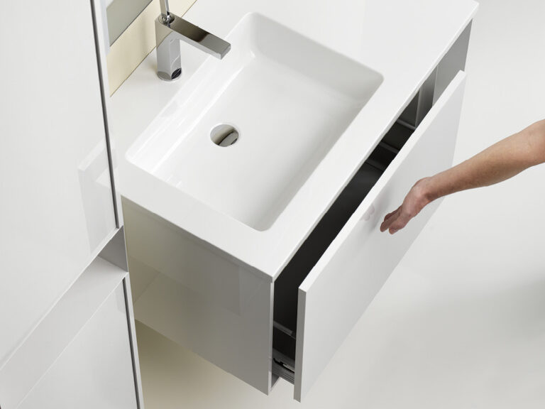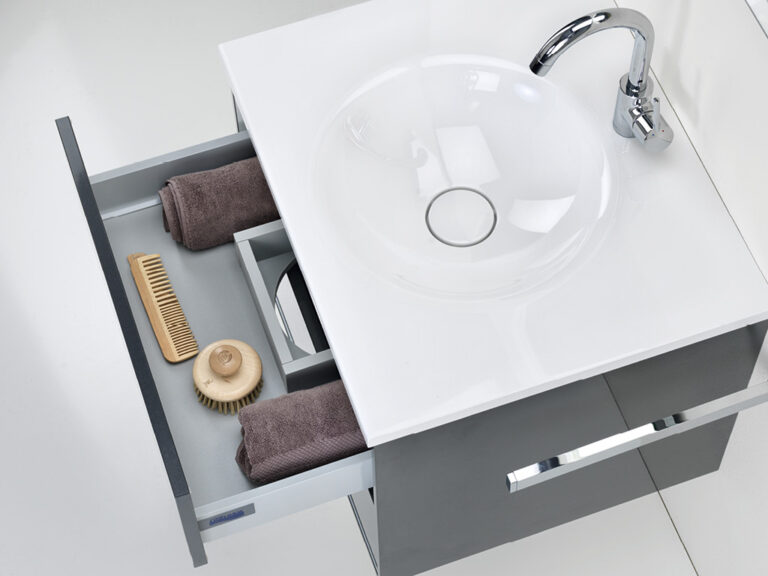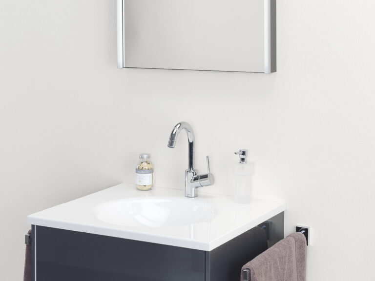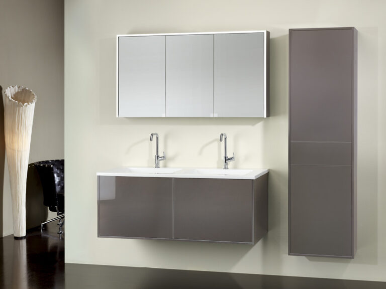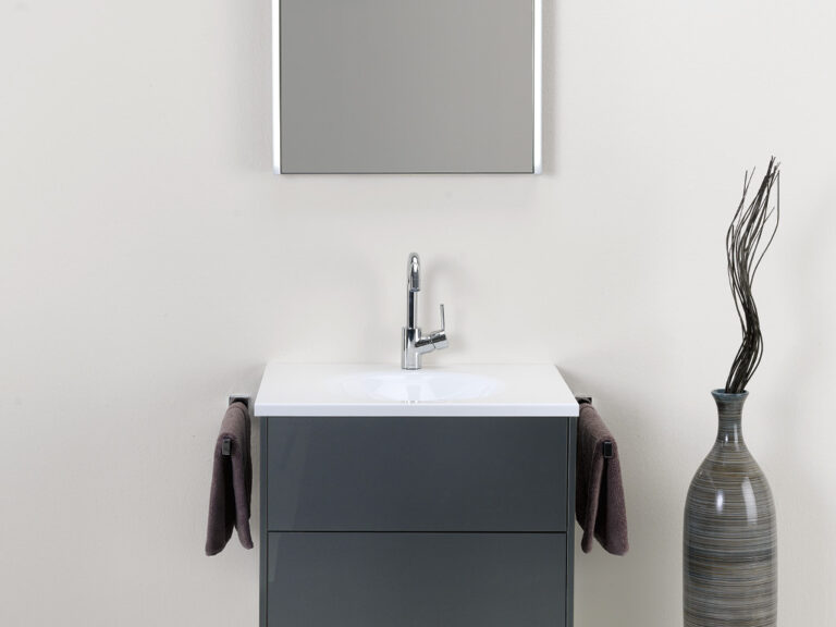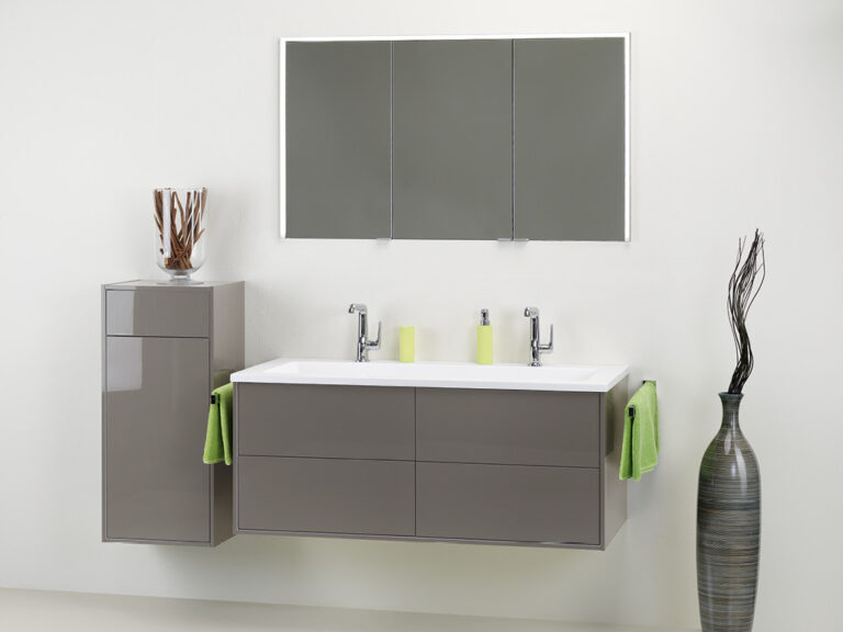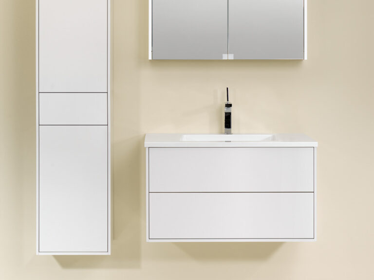 Dass sich Purismus und Wohnlichkeit nicht ausschließen, sondern ganz im Gegenteil eine sehr bereichernde Kombination eingehen können, beweist unser Designprogramm Touch me!. Selbstbewusste Geradlinigkeit mit klaren, grifflosen Flächen in strenger, geometrischer Form sowie eine subtile Verspieltheit mit waagrechten und senkrechten Linien definieren die Ästhetik von Touch me!. Korpusse und Fronten sind in vier stylishen, monochromen Hochglanz-Oberflächen, in zwei hochwertigen Glasausführungen sowie der designstarken Holzoptik Baseno Lärche erhältlich. Türen und Laden sind mit einem erstklassigen „Touch to open“-Mechanismus ausgestattet. Der Clou sind die optional wählbaren weißen, offenen und rückseitig verspiegelten Metallboxen, die mit feiner, präziser Linienführung das Zusammenspiel der Elemente in dezenter, unaufdringlicher Raffinesse betonen und dabei die Leichtigkeit der Designserie noch zusätzlich akzentuieren. Die weißen Mineralguss-Waschtische mit fünf verschiedenen Beckenformen fügen sich harmonisch in das Bild der formalen Reduziertheit und stylishen Schlichtheit. Die Spiegelschränke und Spiegel verfügen über dreiseitig umlaufende LED Lichtbänder und werden als authentische Design- und Einrichtungselemente jedem Bedürfnis nach Funktion und Raum gerecht. Touch me! wird auch Sie berühren.