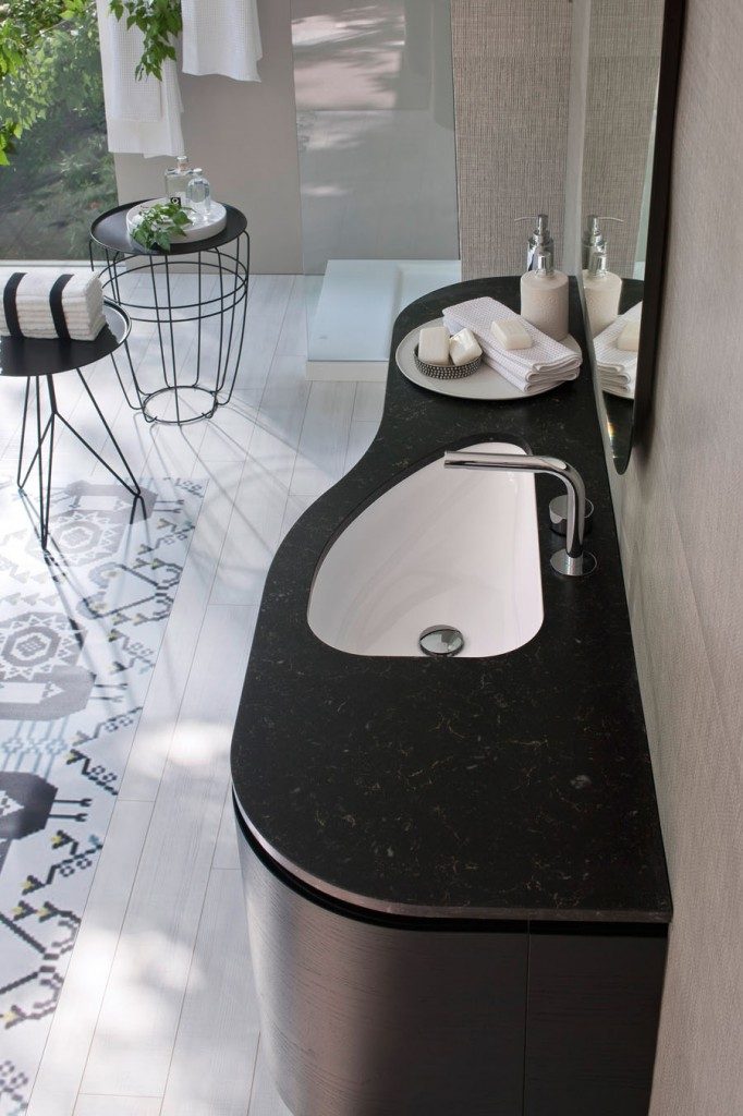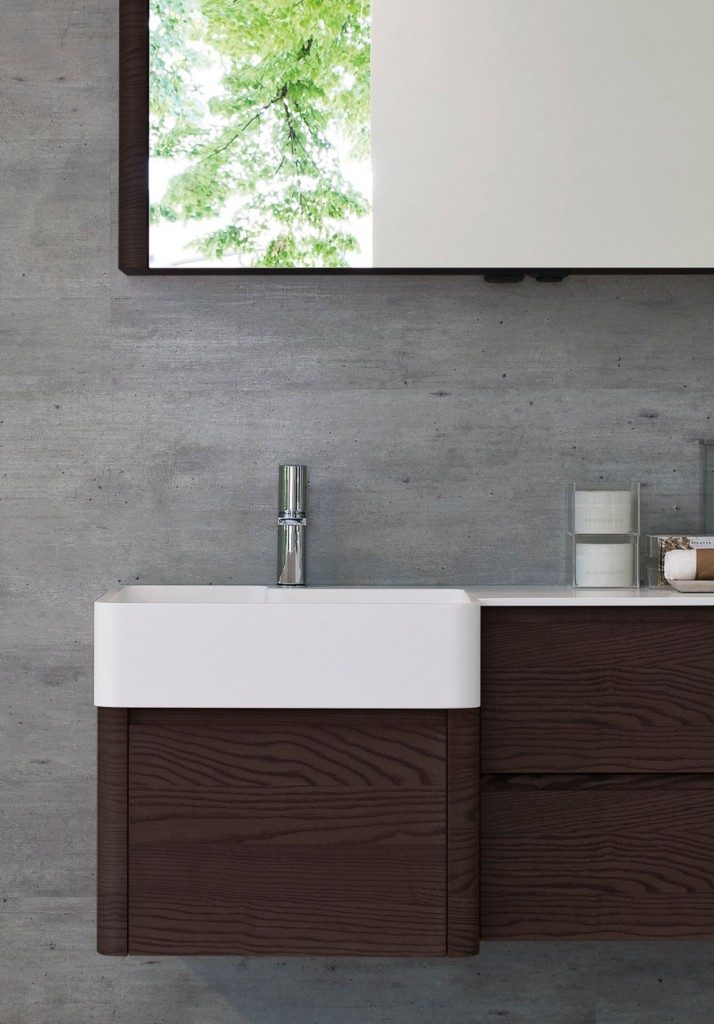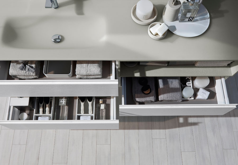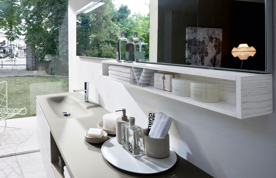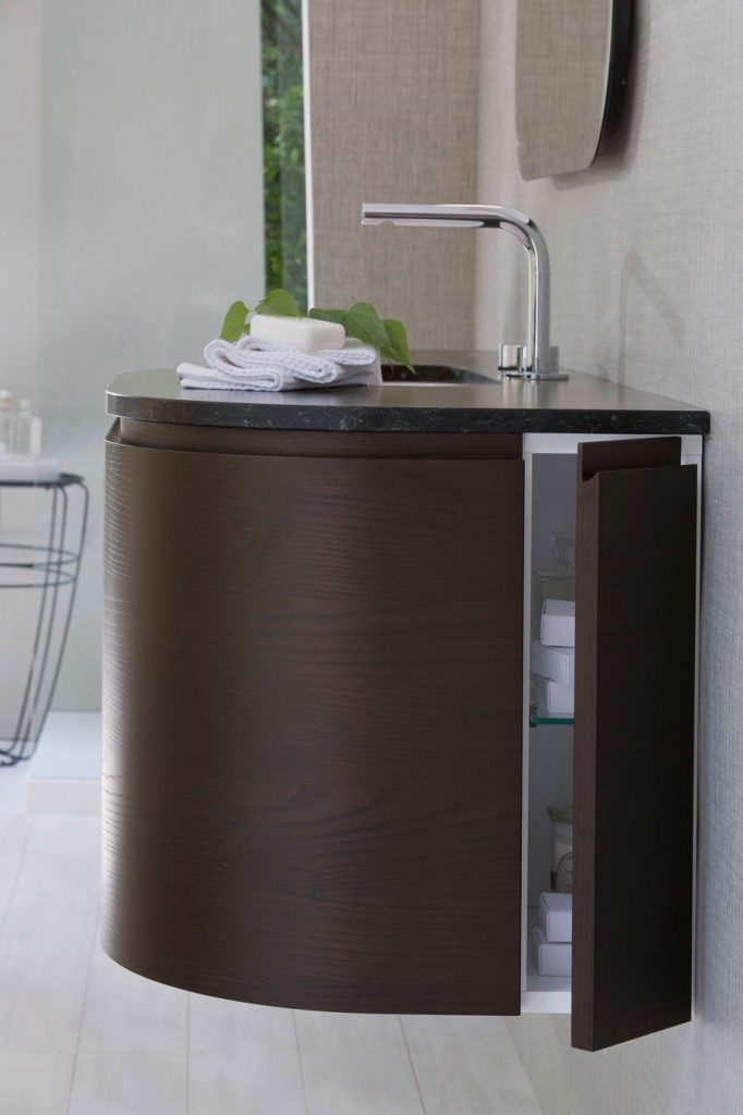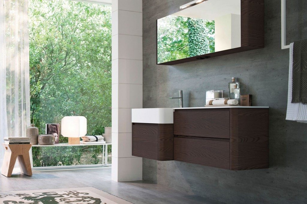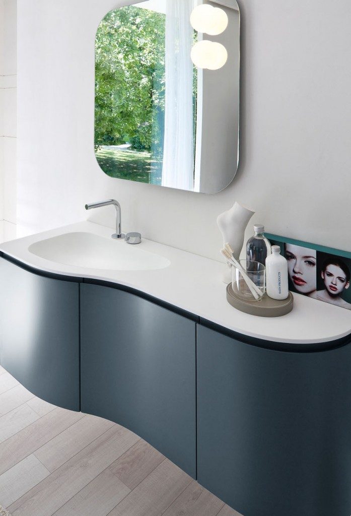 Die präsentierten modernen Bäder zielen dank der Badezimmermöbel und der Badaccessoires auf Ergonomie ab: die abgerundeten Formen und die offenen Elemente unter dem Spiegel machen die Möbel praktischer, ohne das Design aus den Augen zu verlieren. Es gibt unendlich viele Personalisierungsmöglichkeiten: von den mehr als einhundert Farben über die Möbel- und Waschbeckenoberflächen bis hin zu klassischen Materialien wie Esche oder zu innovativen Materialien wie Aquatek und Aqualux. Die Lösung mit Hängeschrank und abgerundeten Konturen macht My Seventy Plus zur Kollektion für diejenigen, die Badezimmermöbel mit romantischen Retro-Geschmack, die gleichzeitig modern und trendig sind, lieben.