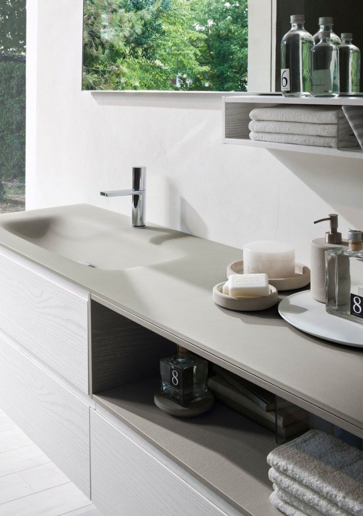 Die modernen Badezimmermöbel My Seventy Plus by Idea erkunden alle Formen der Design-Badezimmereinrichtung , von den weicheren Linien, die sich sanft in die Umgebung einfügen, bis hin zu lineareren Formen, die mit Modularität und Volumen spielen.