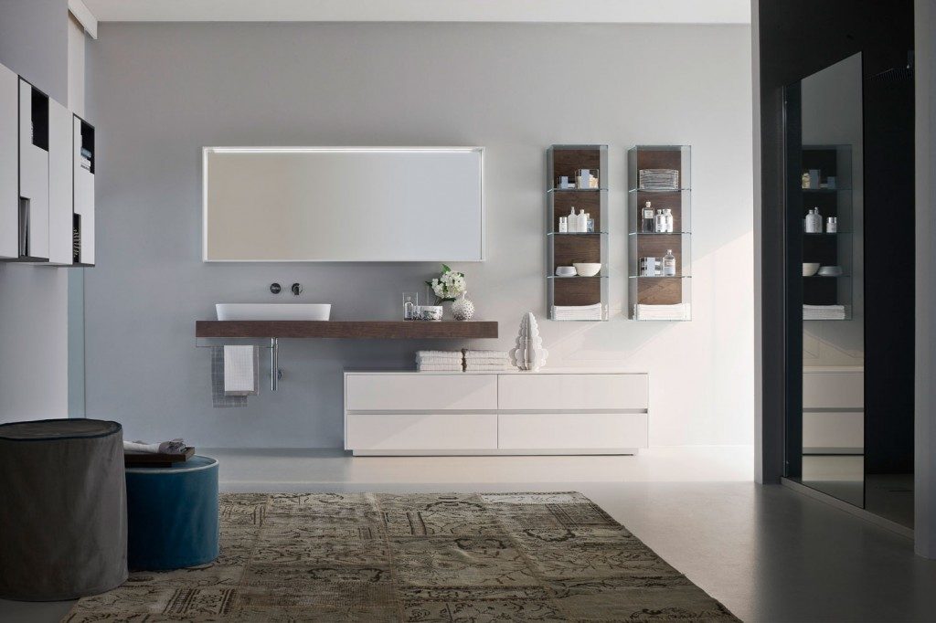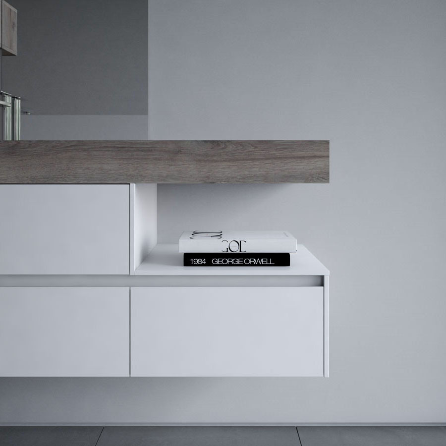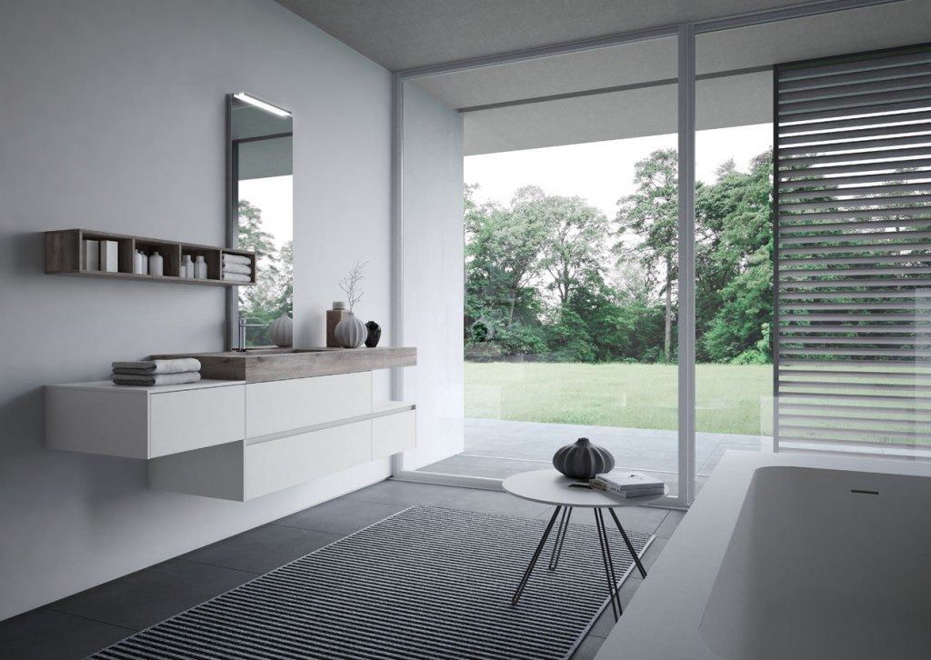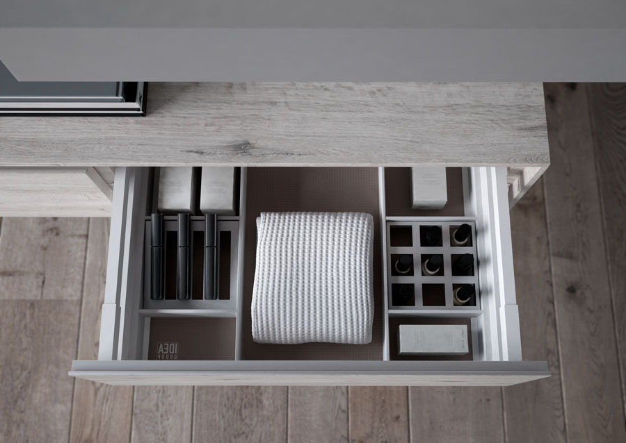Eine Linie mit modernen Badezimmermöbeln , um neue persönliche Räume zu schaffen und das Ambiente mit zeitlosen Badezimmermöbeln mit perfekt aufeinander abgestimmten Linien und Stärken einzurichten. Das Design dieser Kollektion und ihrer Badaccessoires sorgt für ein sinnliches Vergnügen. Die Oberflächenausführungen treffen jeden Geschmack: matt oder glänzend-gebürstet in verschiedenen Farben lackiert bzw. Unicolor HPL-Laminate für diejenigen, die sich für eine traditionelle Ästhetik entscheiden, aber ein innovatives Material mit hohem Oberflächenwiderstand bevorzugen. Die Modularität der Badezimmermöbel Nyù gestattet es, den Raum optimal zu personalisieren: der Protagonist des Projekts kann das Waschbecken mit Bodeninstallation oder das Badezimmermöbel in Hängeausführung, dass je nach Geschmack oder Bedürfnisse strukturiert ist, werden. Verschiedene Details können außerdem dem Badezimmer noch mehr Stil verleihen: vom Spiegel mit LED-Rahmen zu den offenen Abschlusselementen.