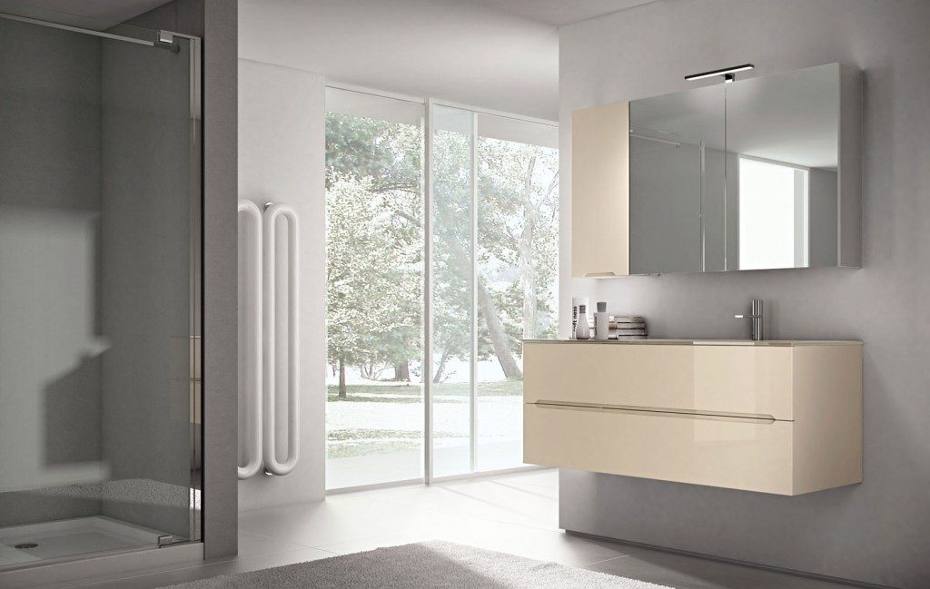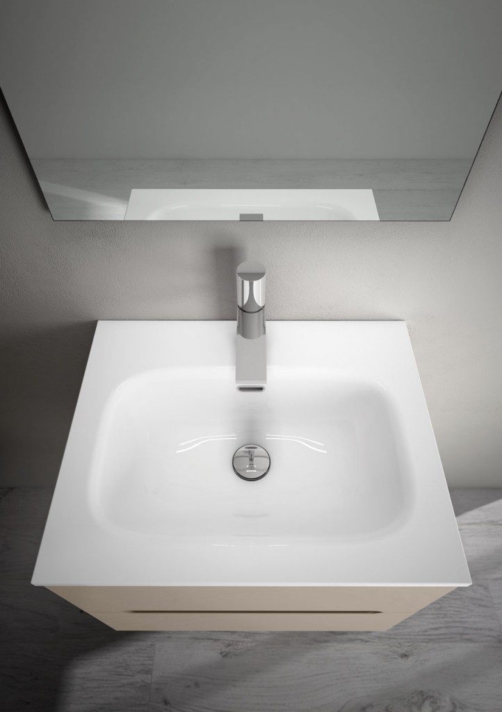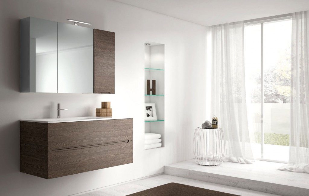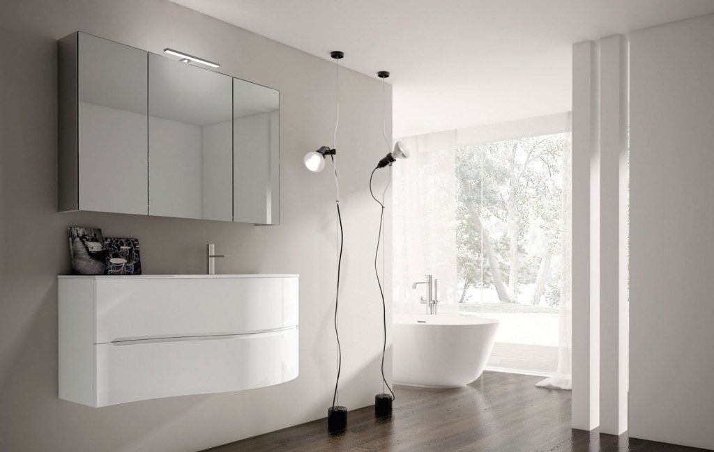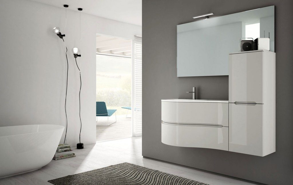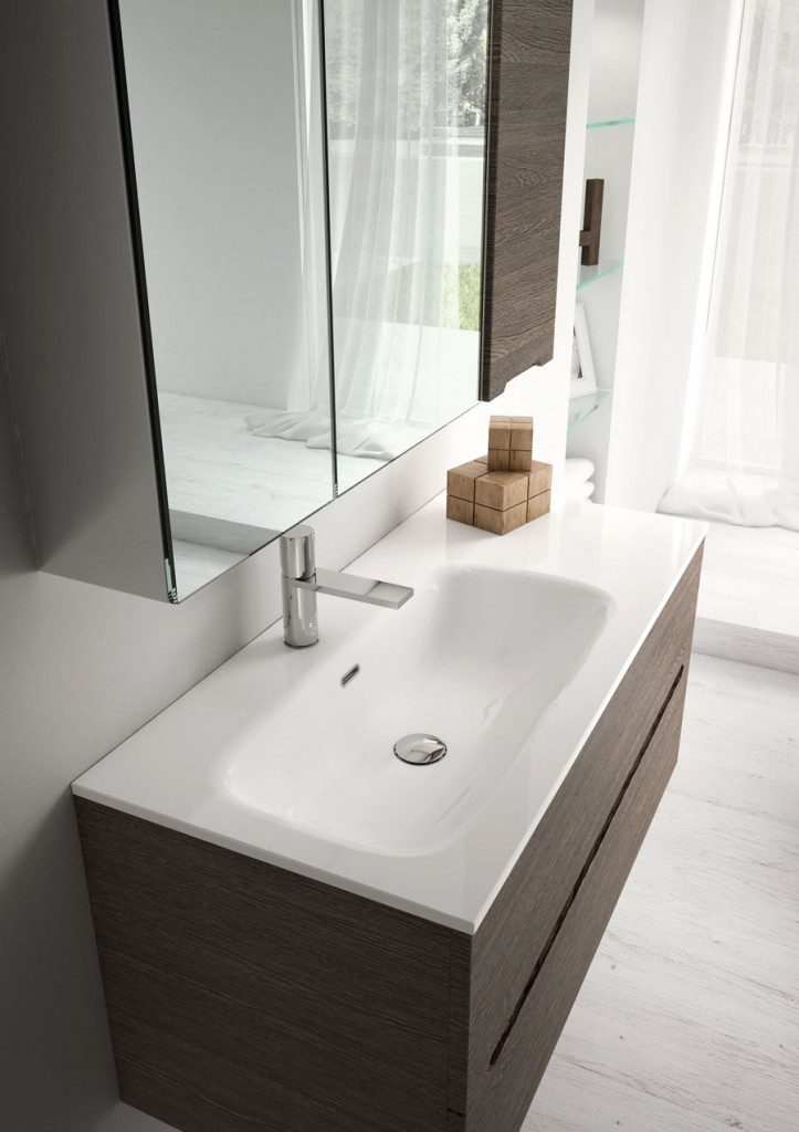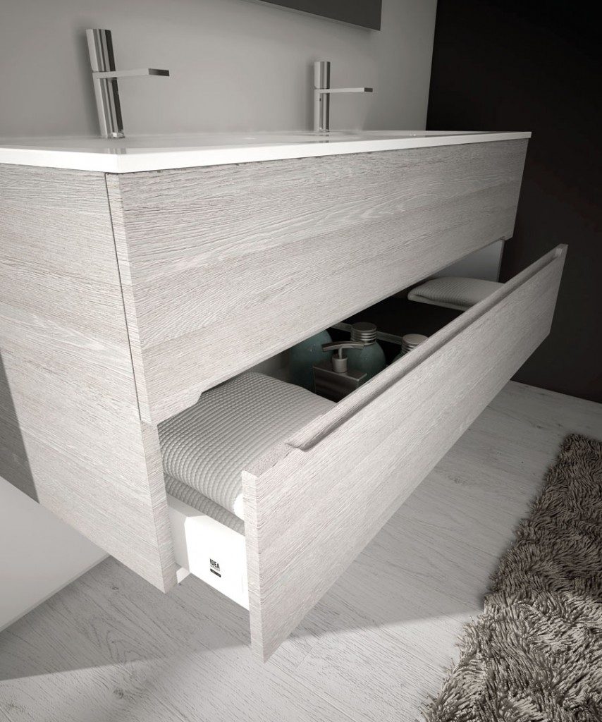 Das Identifikationselement der Kollektion ist das Badezimmermöbel mit doppeltem Schubkasten , das viel Stauraum bietet und dem Badezimmer eine große Funktionalität verleiht. Die Öffnung wird durch die großen, attraktiven in die Tür versenkten Griffe erleichtert; die Form des abgerundeten Badezimmermöbels verleiht dem Ambiente eine angenehm harmonische Note. Die Kollektion ist mit Einzel- oder Doppelwaschbecken erhältlich, das die Oberfläche teilt und absolute Bewegungsfreiheit gewährleistet. Das dezentriert eingebaute Waschbecken stellt eine Variante des Badezimmereinrichtungsprojekts dar, die einen feinen, originellen Dynamismus bevorzugt. Der große Spiegelschrank ist mit einem geräumigen Fach ausgestattet und stellt eine optimale Lösung für diejenigen dar, die einen größeren Platzbedarf haben.