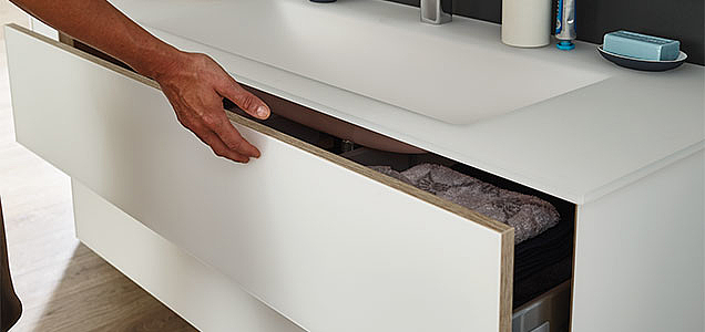 Form follows fuction. Highline 300 als Repräsentant der Premiumserie von Laguna schließt sich dem Gestaltungsgrundsatz aus Design und Architektur, der auf den amerikanischen Architekten Louis Henry Sullivan zurückgeht, voll inhaltlich an. Jedes einzelne Gestaltungselement vereint sowohl Eleganz als auch modernes Design. So z.B. tritt die sg. Push-to-Open-Technik anstelle von Griffleisten bei den Fronten zum Einsatz.