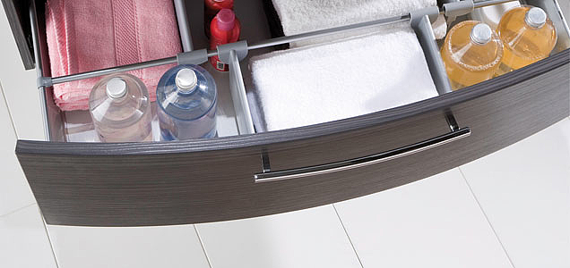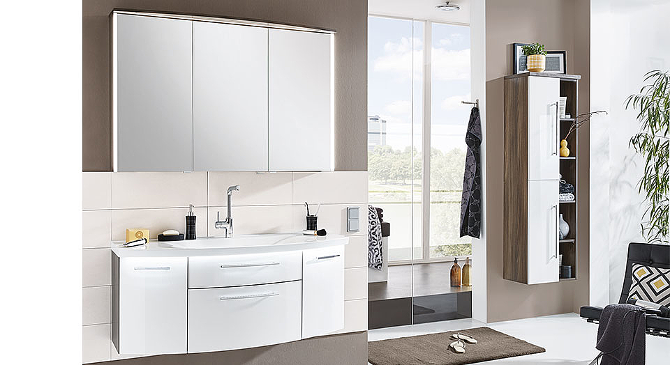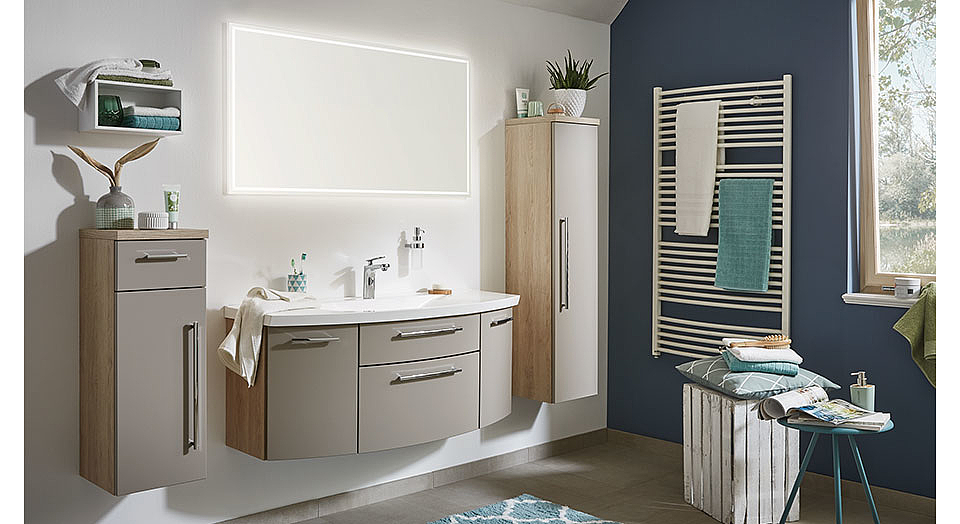 Die Loft-Serie von Laguna setzt einmal mehr auf Rundungen beim Waschtisch und Waschtischunterschrank in Kombination mit dezenter Optik. Loft besticht aufgrund der Vielzahl an Dekoren und Breiten, die eine Vielfalt an Kombinationsmöglichkeiten zulässt. Ergänzungsschränke lassen sich passgenau in eine Badezimmerlandschaft einbringen.
