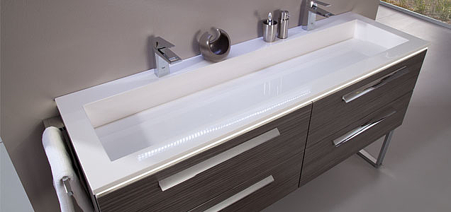 Wer einmal in New York zu Gast war und den Flair von Manhattan erlebt hat, weiß, welchen Ansprühen sich diese Serie von Laguna stellt, wenn sie sich dieses Namens würdig erweisen will. Und sie tut es. Ähnlich wie Big Apples Wolkenkratzer spricht auch diese Bäderlinie eine klare Formensprache. Chromelemente gepaart mit bestechender LED-Beleuchtung tragen dazu bei, dass sie sich rasch in dieser Umgebung wohlfühlen. Hinzu kommen noch Waschtischbreiten bis 1,60 Meter.