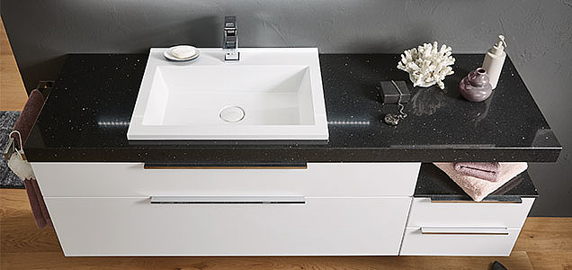 Variantenvielfallt in Kombination mit einer klaren Formensprache und Geradlinigkeit sind das Markenzeichen der Laguna-Serie Platino 2.0. Besondere Aufmerksamkeit erregen die Qsolid-Waschtischplatten, die aus hochwertigen Quartz-Materialien bestehen und kratzfest sind. Dadurch sind sie pflegeleicht und zeichnen sich durch Langlebigkeit aus. Bei Platino 2.0 könne Sie aus einem umfangreichen Sortiment an Waschtischen, Waschtischunterschränken und Spiegelschränken auswählen. Platino 2.0 steht hiermit für einen großen Gestaltungsspielraum.